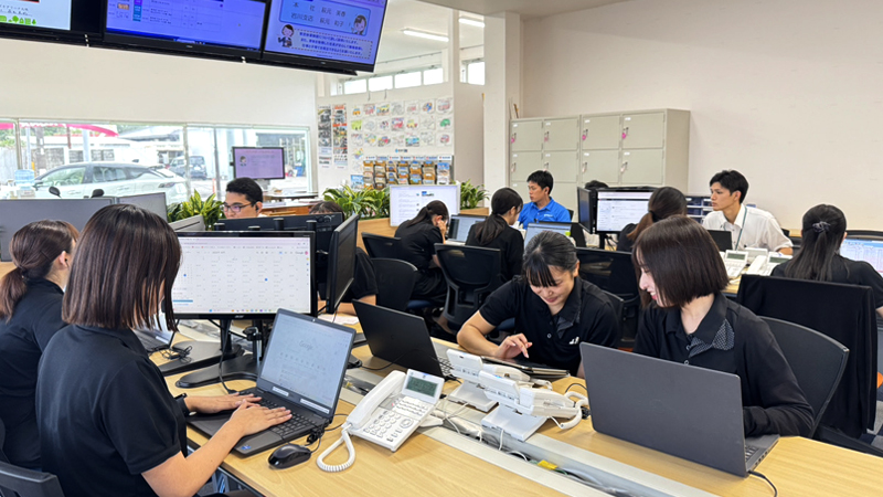 ご来店されるお客様への応対・電話応対・車検や点検の受付・システムへの情報入力・伝票作成・POPや書類の作成・SNSでの広報発信など、様々な業務を担当します。